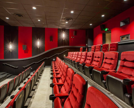 The Dairy’s cinema is equipped with 68 chairs – they are plush velvet rocking chairs with a back row of cozy director’s chairs. This theater is rented on Mondays & Tuesdays & around the Dairy’s regularly programmed cinema calendar.